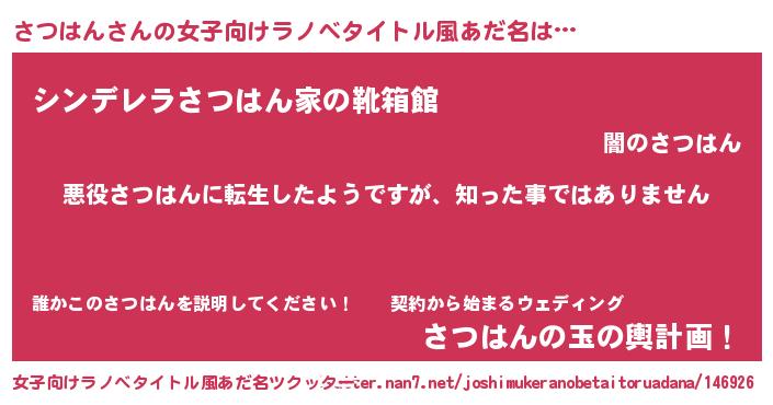 | 男性向けラノベタイトル風あだ名 | 『この素晴らしい世界にさつはんを!』 |