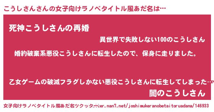 | 男性向けラノベタイトル風あだ名 | 『コウシサンスレイヤー』 |
