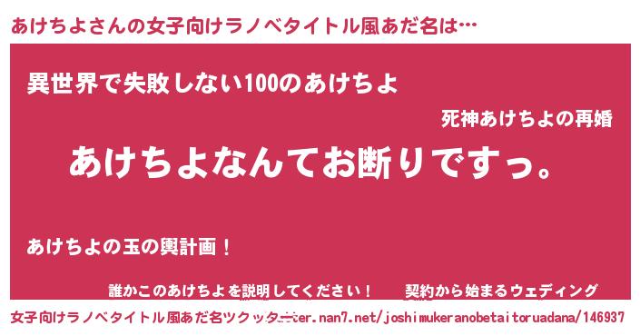 | 意味不明あだ名 | 『自称あけちよ』『永久保存あけちよ』 |