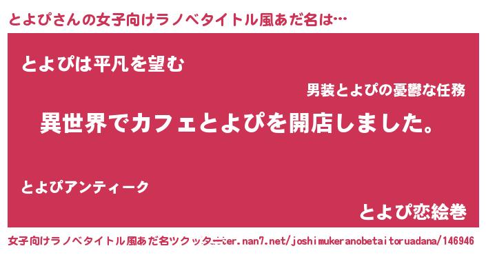 | 男性向けラノベタイトル風あだ名 | 『誰もが恐れるあのとよぴが、ぼくの専属メイドになるようです。』 |