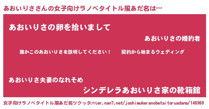 | 男性向けラノベタイトル風あだ名 | 『アオイリサアートオンライン』 |