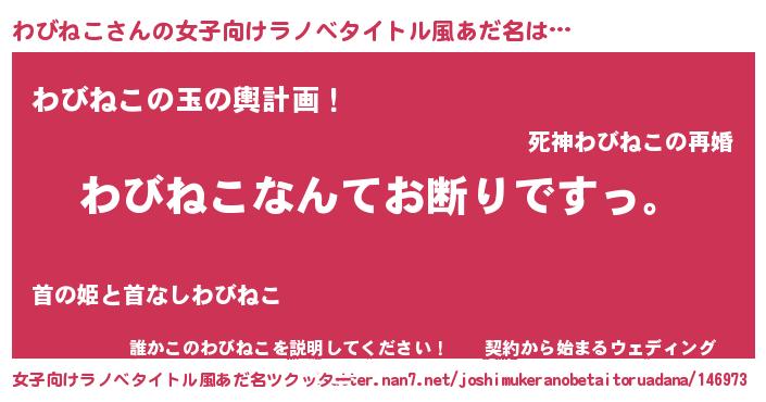 | 男性向けラノベタイトル風あだ名 | 『魔法科高校のわびねこ』 |