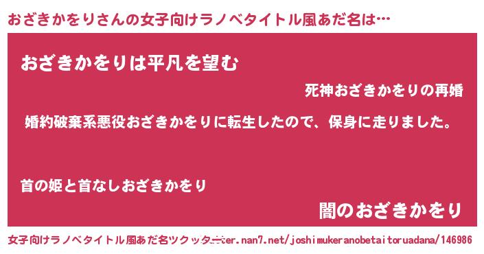 | 胡散臭い通販商品みたいなあだ名 | 『信頼と実績のペンダント…その名も「おざきかをり」』 |