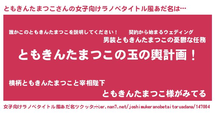 | 胡散臭い通販商品みたいなあだ名 | 『億万長者になれるブレスレット…その名も「ともきんたまつこ」』 |