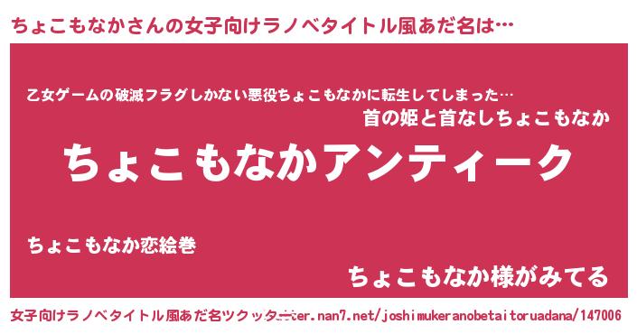 | 意味不明あだ名 | 『自称ちょこもなか』 |