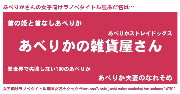| 男性向けラノベタイトル風あだ名 | 『やはりあべりかの青春ラブコメはまちがっている 』 |