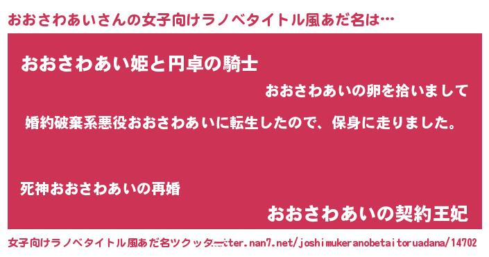 | 料理風あだ名 | 『おおさわあいごはん』 |