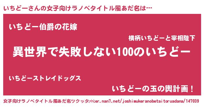 | 男性向けラノベタイトル風あだ名 | 『いちどーという概念が存在しない退屈な世界 』 |