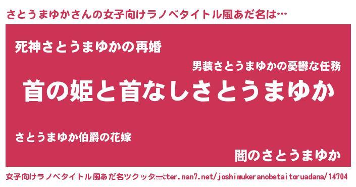| 男性向けラノベタイトル風あだ名 | 『はたらくさとうまゆかさま!』 |