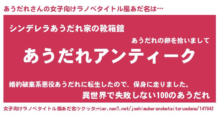 | 意味不明あだ名 | 『自称あうだれ』『永久保存あうだれ』 |