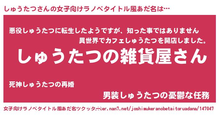 | ファンタジー風あだ名 | 『エターナルシュウタツー』 |