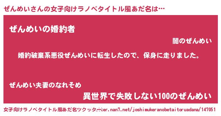 | 男性向けラノベタイトル風あだ名 | 『ゼンメイスレイヤー』 |