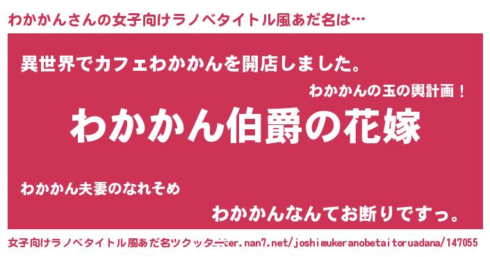 | ファンタジー風あだ名 | 『エターナルワカカンー』『ゼワカトゥ』 |