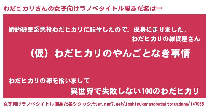 | 胡散臭い通販商品みたいなあだ名 | 『必ず成功するブレスレット…その名も「わだヒカリ」』 |