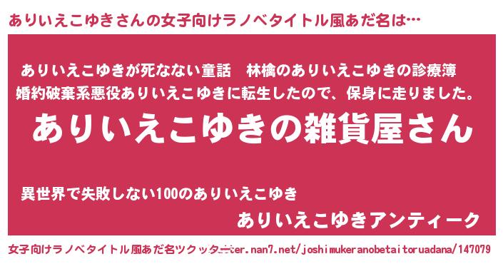| 男性向けラノベタイトル風あだ名 | 『やはりありいえこゆきの青春ラブコメはまちがっている 』 |