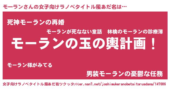 | 男性向けラノベタイトル風あだ名 | 『転生したらモーランだった件』 |