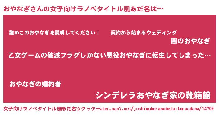 | 男性向けラノベタイトル風あだ名 | 『魔弾の王とおやなぎ』 |