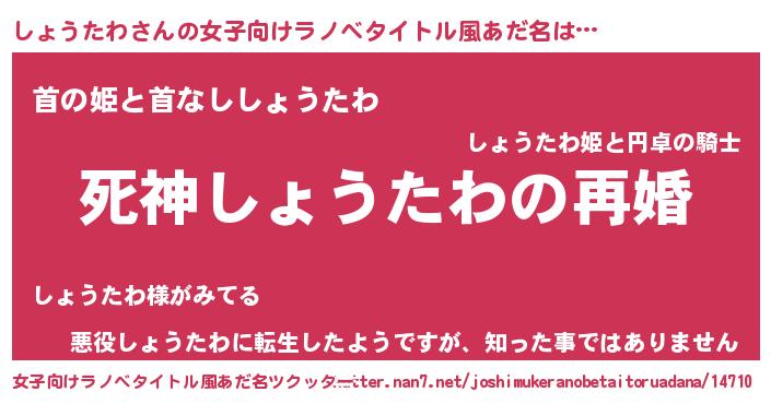| 男性向けラノベタイトル風あだ名 | 『ノーゲーム・ノーショウタワ』 |