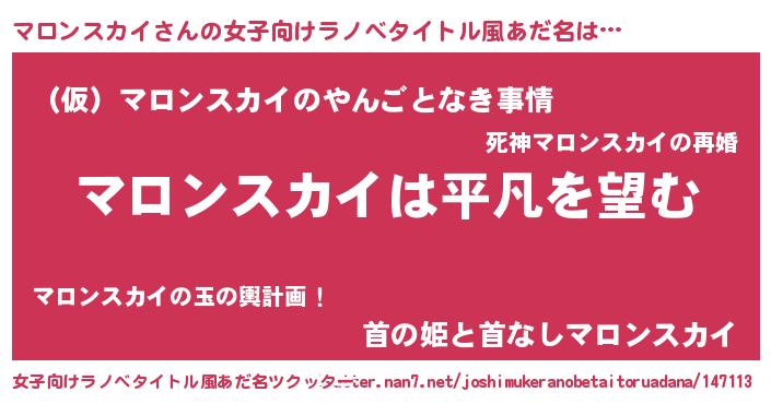| 胡散臭い通販商品みたいなあだ名 | 『信頼と実績のペンダント…その名も「マロンスカイ」』 |