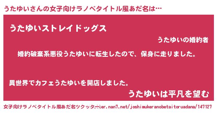 | 男性向けラノベタイトル風あだ名 | 『ウタユイスレイヤー』 |