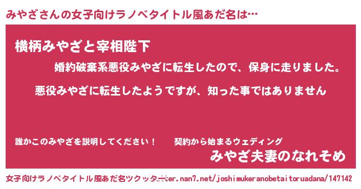 | 胡散臭い通販商品みたいなあだ名 | 『あなたにだけ特別に提供する世界で10本だけ現存している希少なブランデー…その名も「みやざ」』 |