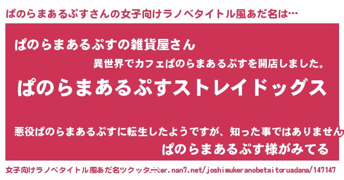 | 意味不明あだ名 | 『自称ぱのらまあるぷす』 |