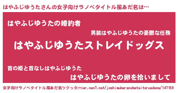| 男性向けラノベタイトル風あだ名 | 『Re:はやふじゆうたから始める異世界生活』 |