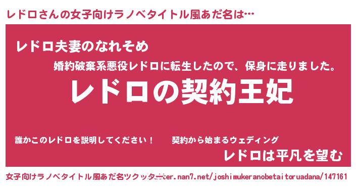 | 男性向けラノベタイトル風あだ名 | 『レドロという概念が存在しない退屈な世界 』 |