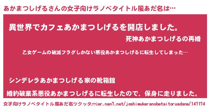 | 意味不明あだ名 | 『住所不定無職あかまつしげる(47歳)』 |