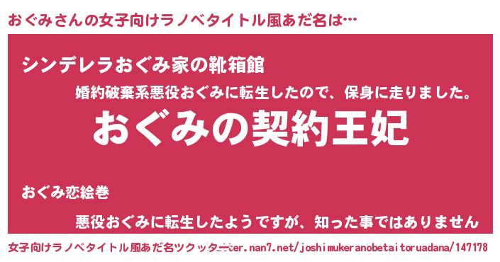 | 胡散臭い通販商品みたいなあだ名 | 『来世でも幸せになれる健康食品…その名も「おぐみ」』 |