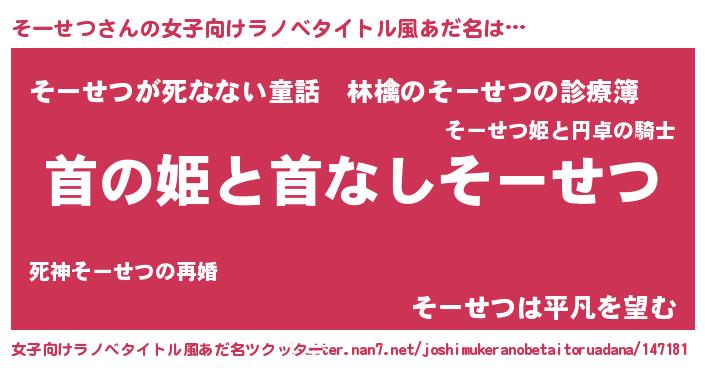 | 意味不明あだ名 | 『住所不定無職そーせつ(39歳)』 |