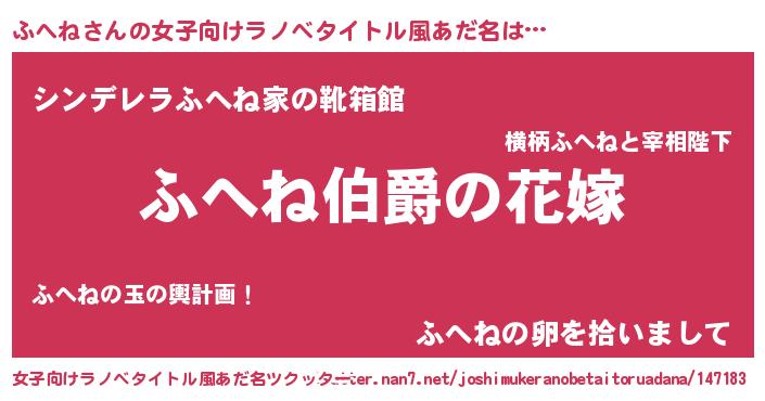 | 男性向けラノベタイトル風あだ名 | 『やはりふへねの青春ラブコメはまちがっている 』 |
