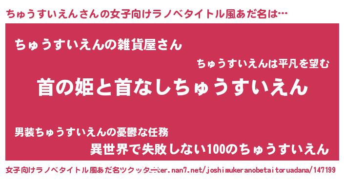 | 男性向けラノベタイトル風あだ名 | 『はたらくちゅうすいえんさま!』 |