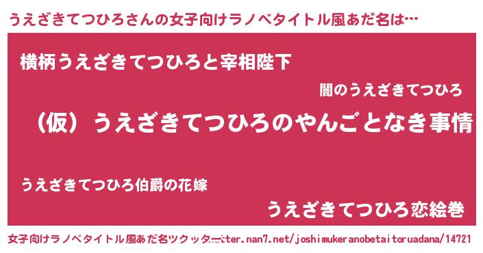 | 男性向けラノベタイトル風あだ名 | 『うえざきてつひろの憂鬱』 |