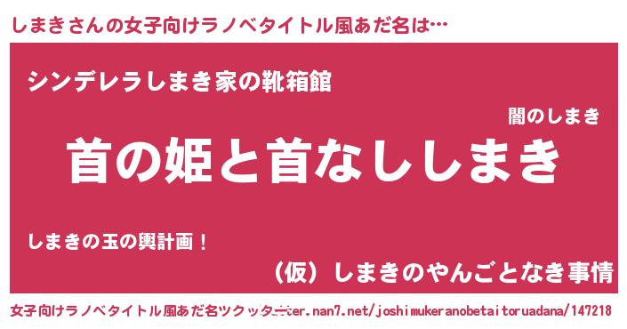 | 男性向けラノベタイトル風あだ名 | 『はたらくしまきさま!』『緋弾のシマキ』 |