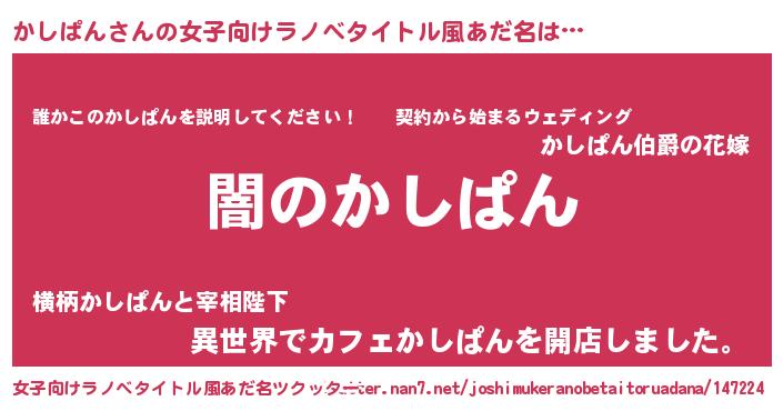 | 男性向けラノベタイトル風あだ名 | 『Re:かしぱんから始める異世界生活』 |