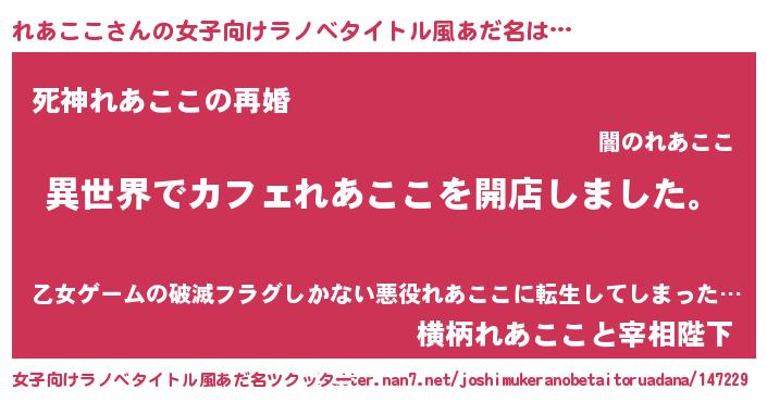 | 男性向けラノベタイトル風あだ名 | 『誰もが恐れるあのれあここが、ぼくの専属メイドになるようです。』 |