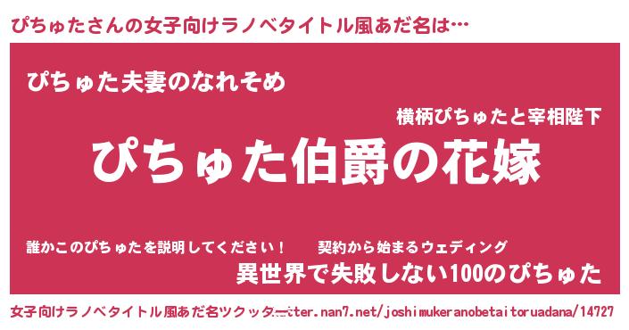 | 男性向けラノベタイトル風あだ名 | 『やはりぴちゅたの青春ラブコメはまちがっている 』 |