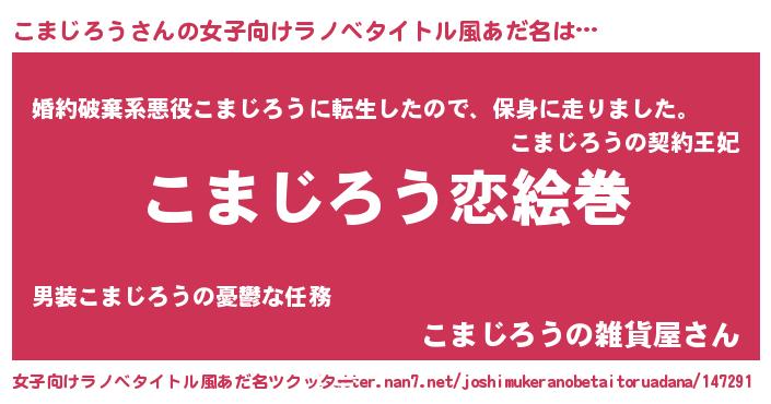 | 男性向けラノベタイトル風あだ名 | 『ノーゲーム・ノーコマジロウ』 |