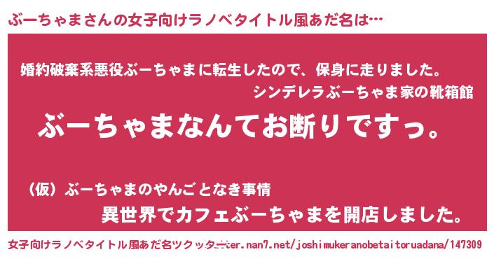 | 意味不明あだ名 | 『自称ぶーちゃま』『永久保存ぶーちゃま』 |