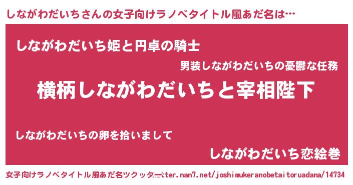 | 恥ずかしいあだ名 | 『プリティーしながわだいち』『しなちん』 |