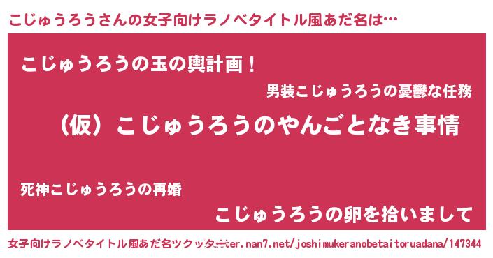 | 男性向けラノベタイトル風あだ名 | 『こじゅうろうの憂鬱』 |