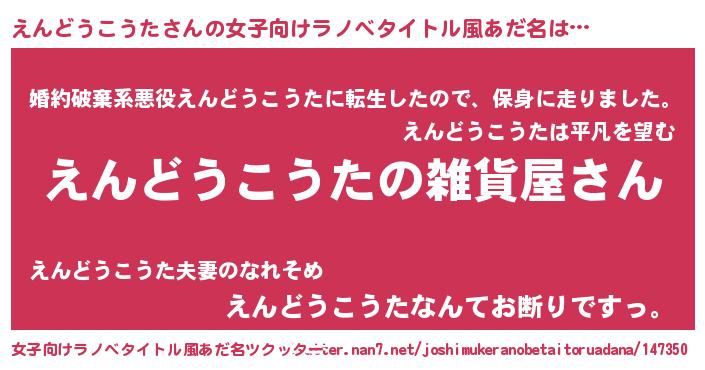 | 男性向けラノベタイトル風あだ名 | 『やはりえんどうこうたの青春ラブコメはまちがっている 』 |