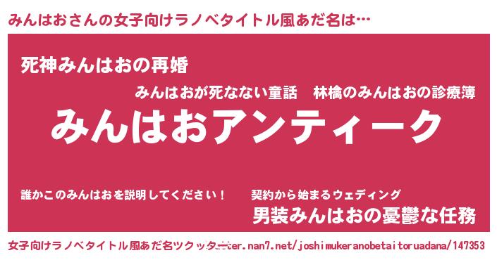 | ヘコむあだ名 | 『みんにゅー』『みんはお(苦笑)』 |