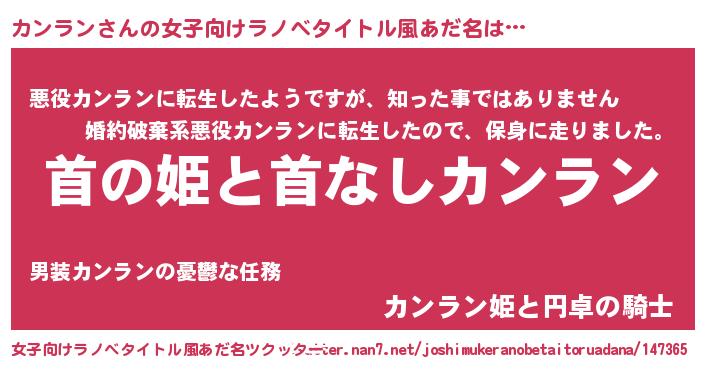| 男性向けラノベタイトル風あだ名 | 『はたらくカンランさま!』 |