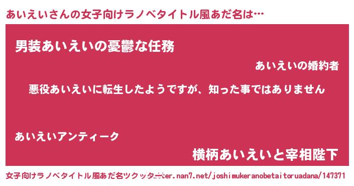 | 胡散臭い通販商品みたいなあだ名 | 『あなたにだけ特別に提供する世界で10本だけ現存している希少なブランデー…その名も「あいえい」』 |