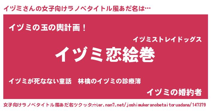 | ヒーロー風カッコイイあだ名 | 『慈愛の使者イヅミ』『究極戦士イヅミ』 |