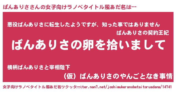 | 胡散臭い通販商品みたいなあだ名 | 『伝統あるサプリメント…その名も「ばんありさ」』 |