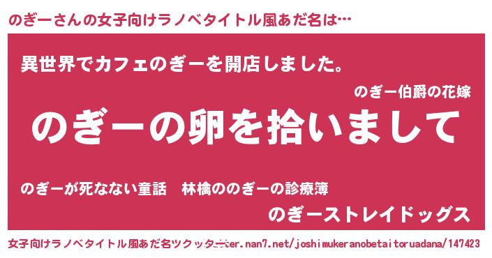 | 恥ずかしいあだ名 | 『ノギリンリン』『のぎちん』 |