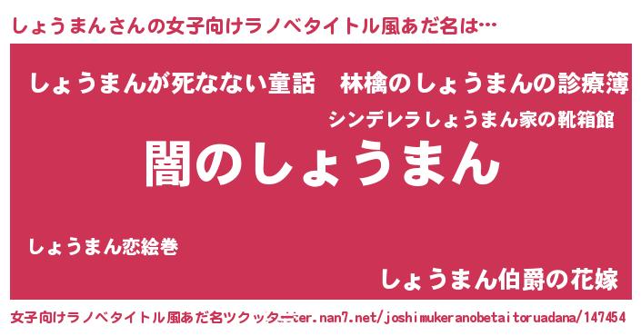 | 胡散臭い通販商品みたいなあだ名 | 『テレビで話題のアガリクス…その名も「しょうまん」』 |
